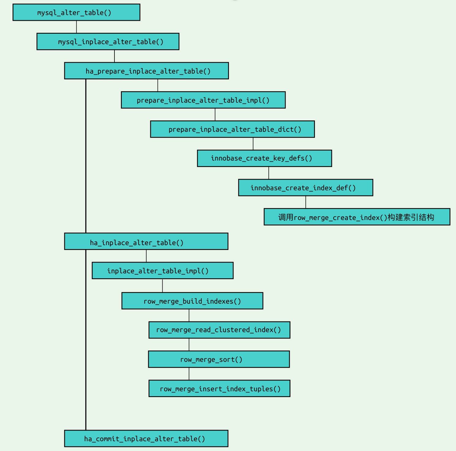 ha_prepare_inplace_alter_table()根据ALTER TABLE语句传入的参数进行检查,构建被创建的索引信息,创建索引的B+树.